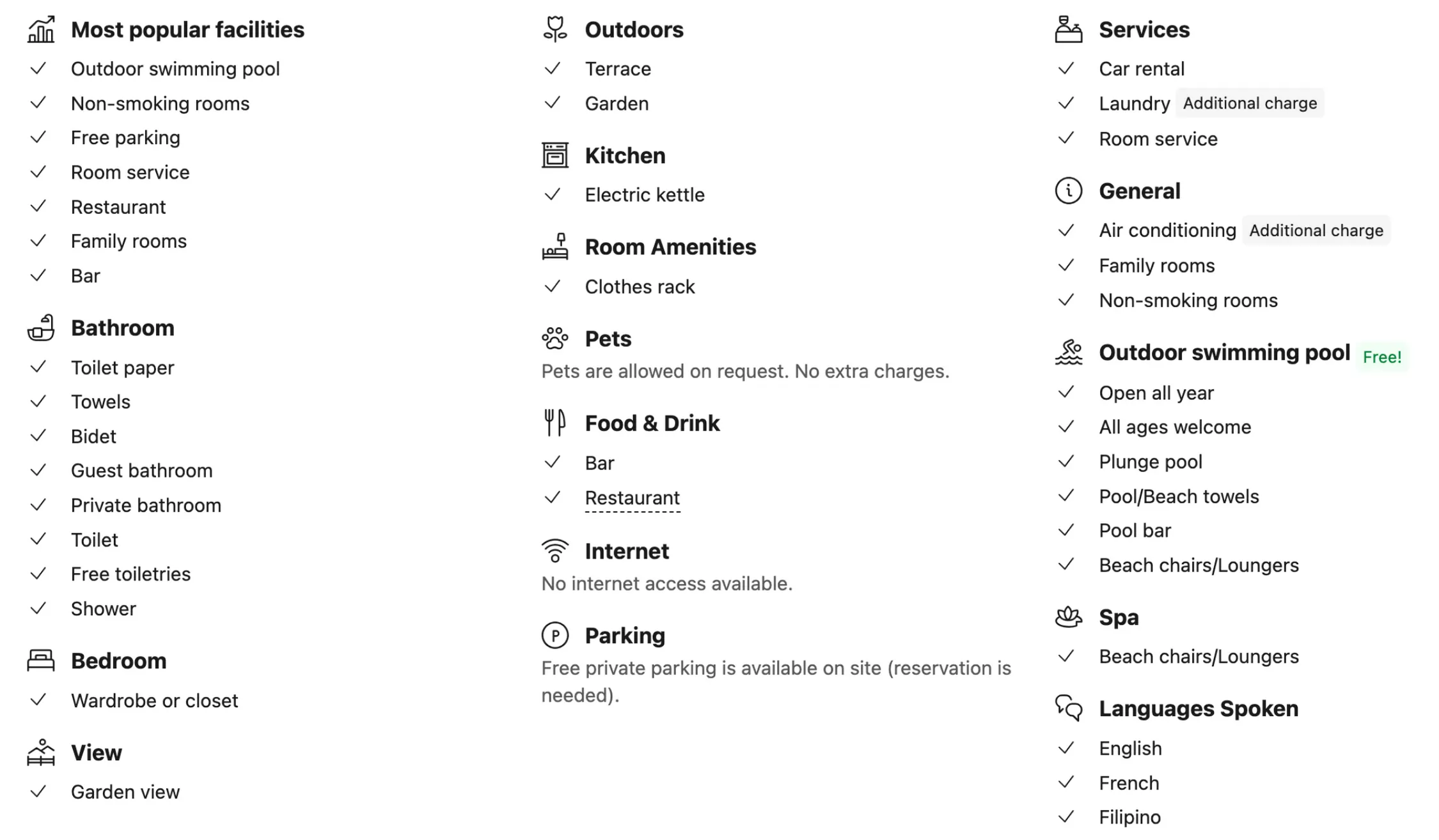 Tahanan Resort has an outdoor swimming pool, free private parking, a garden and a terrace. Guests can enjoy Italian and Japanese dishes at the restaurant or have a drink at the bar.
